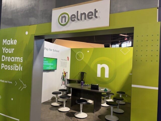 At the Nelnet pod, volunteers like Artibee help students understand the realities of investing in continuing education and the impact on career choices. She explains, “When I go and I represent the Nelnet group, it’s really important to talk about ways that you don’t have to take out student loans to go to school. You can work on your academics now and get some grants or scholarships… I provide some examples of how corporations will provide scholarships with submissions of essays, or tuition reimbursement.”